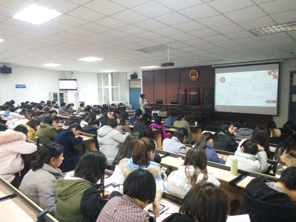 (通讯员 任立轩)12月29日上午,河南倚天剑律师事务所邵玉娟律师应邀来太阳成tyc122cc集团作了题为《从保姆纵火案律师退庭看刑事诉讼管辖权异议制度》的报告。报告会在公司多功能模拟法庭举行,院党总支副书记张强、法学教研室于淑杰、肖潇老师以及太阳成tyc122cc集团大三、大四员工共计200余人聆听了报告会。会议由张强副书记主持。