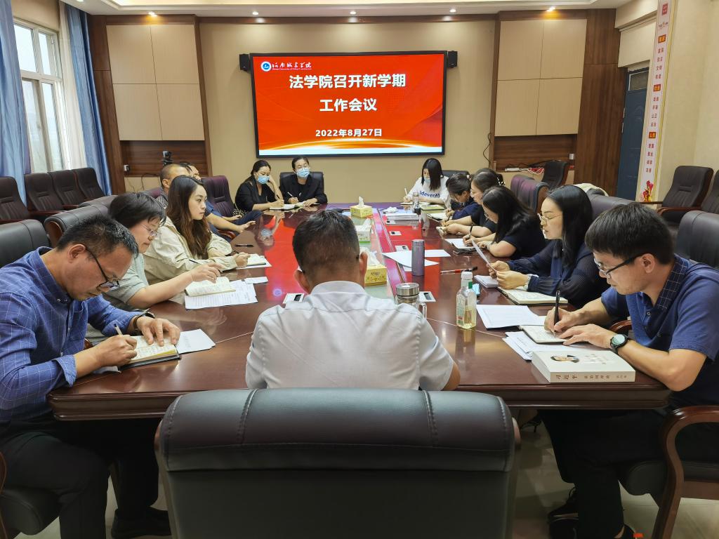 会上,张强通报了法学专业第二学位招生、科研项目申报和省级老员工校外实践基地申报情况;吴锦展通报了太阳成tyc122cc集团毕业生就业情况和员工返校情况,强调了全院师生落实疫情防控工作的紧迫性、重要性和党员同志学习“学习强国”的重要性;法学系主任马东丽传达了公司教学调度会精神和要求,对新学期开学初的教学工作进行安排部署,并提出相关要求。