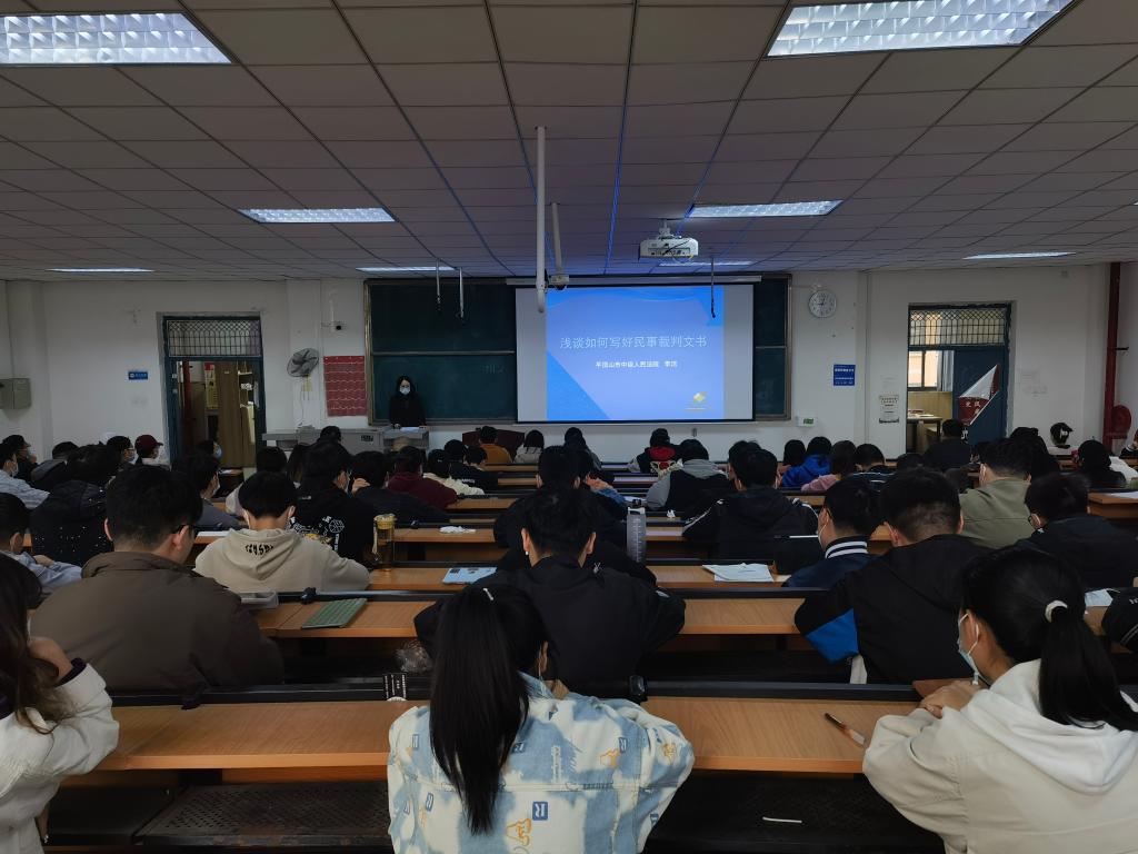 李洁法官结合自己历年来的民事裁判经验,以真实典型民事案件裁判文书为切入点,对民事裁判文书格式规范性和语言表达清晰准确、诉讼请求概括明确、认定事实清楚及说理充分逻辑等方面进行详细又全面的讲解。报告会结束后,同学们还积极同李洁法官进行互动,李法官对员工提出的问题进行了认真细致的回答。李法官的报告令在场师生深受触动与启迪,大家纷纷表示受益良多。
