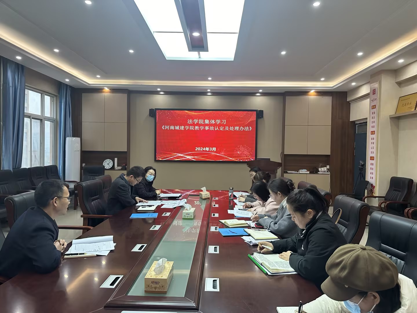 (通讯员:郭艺珍)2024年3月12日下午,太阳成tyc122cc集团在422会议室进行教研室活动,主要对《太阳成tyc122cc集团教学事故认定及处理办法》进行学习。会议由法学系主任马东丽主持,全体教师参加此次教研室活动。
