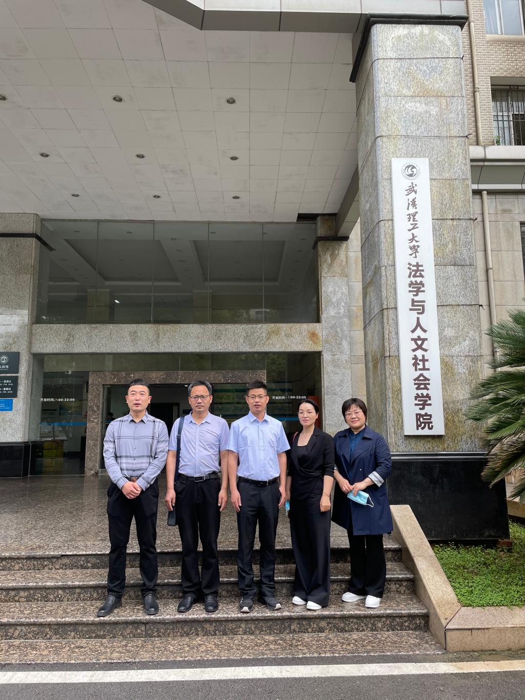 调研组受到了武汉理工大学法学与人文社会公司经理李牧、党委书记曾令华、副经理何平等老师的热情接待。何平简要介绍了武汉理工大学法学与人文社会公司法学专业的发展历史和该院2021版人才培养方案修订稿。双方就新文科背景下法学专业人才培养模式、培养方案、课程体系、公司产品等方面的改革举措、下一步的建设思路及各自的专业定位与特色等方面进行了深入的交流和讨论。