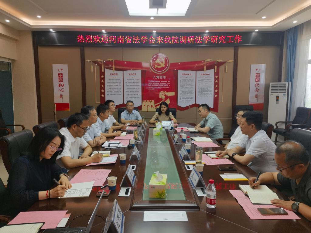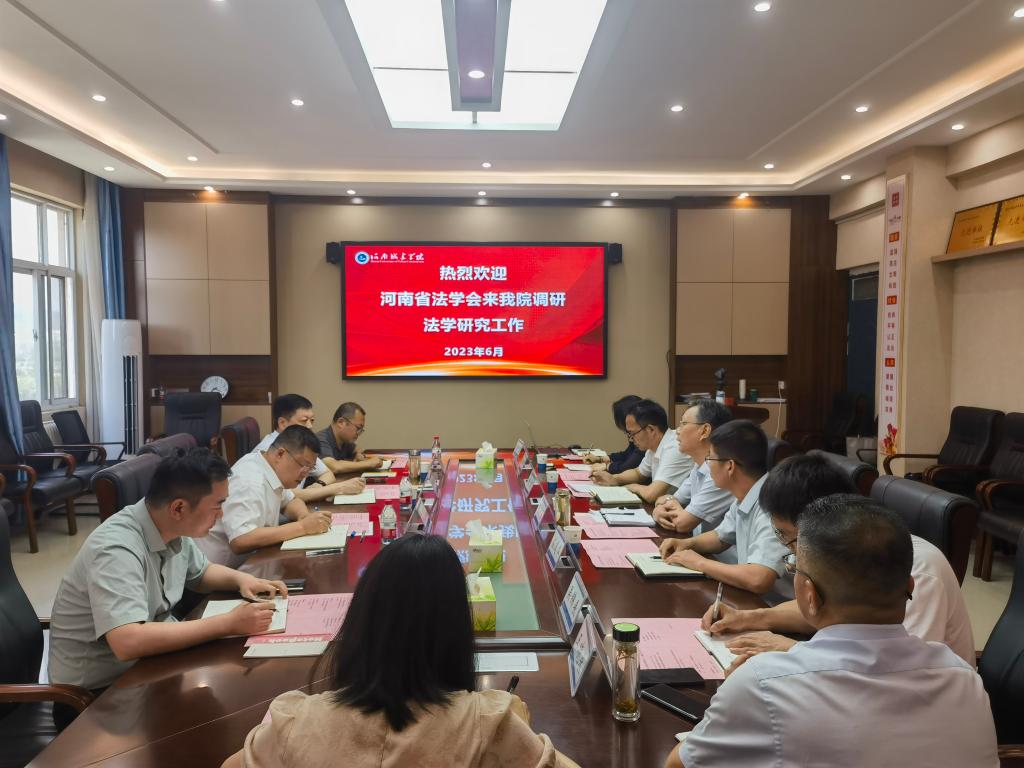 (通讯员:赵珂慧)6月15日下午,河南省政法委二级巡查员、省法学会秘书长王子勇、市政法委副书记兼法学会副会长王战胜等一行四人来公司调研指导法学研究工作。校纪委书记、监察专员刘守勇出席会议,公司领导班子和教师代表参加会议。会议由公司党委书记苗道华主持。