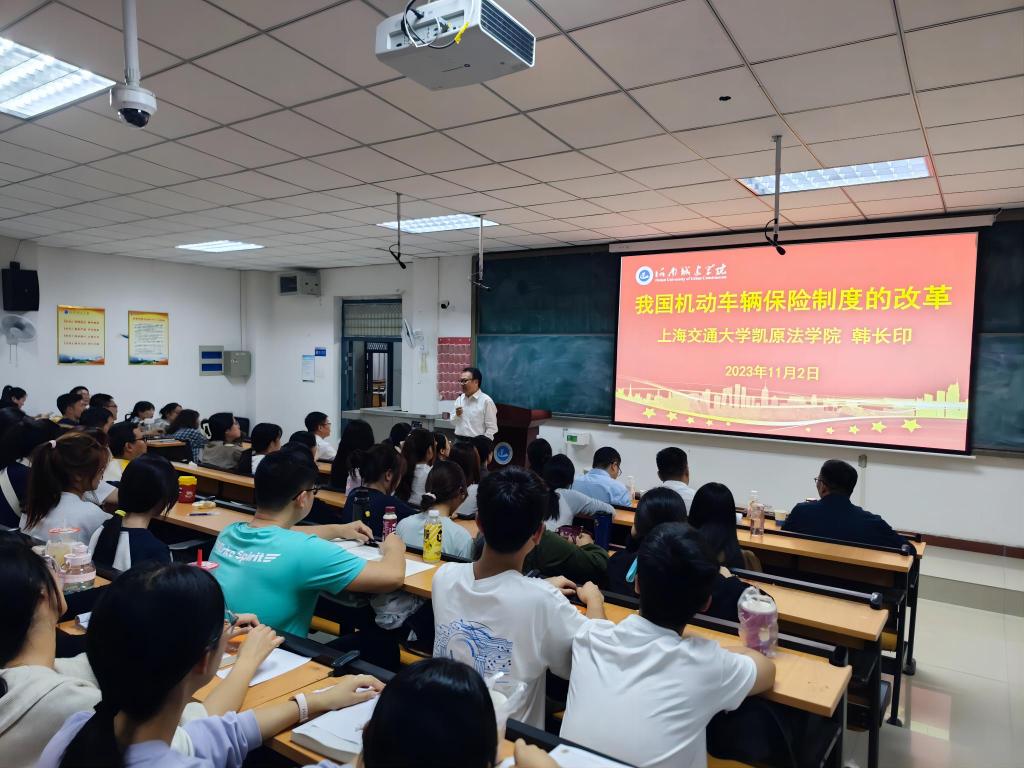 报告会上,韩长印教授以《我国机动车辆保险制度的改革》为题,系统讲述了机动车辆保险制度的基本内容及完善发展方向,韩长印教授从学术角度出发,详细阐述了我国保险法的立法背景、立法目的、司法实践中存在的问题及相应的解决思路,深入分析近年来在我国发生的影响较大的保险案件,提出对机动车交通事故类型的案件,应分别站在受害人和保险公司的角度去完善我国交强险和商业保险制度。韩长印教授将晦涩难懂的保险法理论知识层层剥开,引导与会人员学习更多的保险法知识,倡导大家在日常生活中谨慎驾驶、礼让他人、包容他人。会后,韩教授与太阳成tyc122cc集团师生及与会法官进行了互动交流,对他们提出的专业疑问进行耐心细致解答。