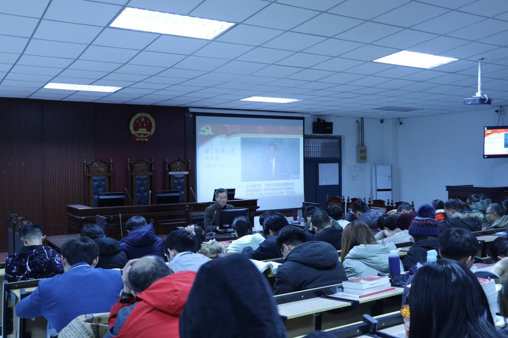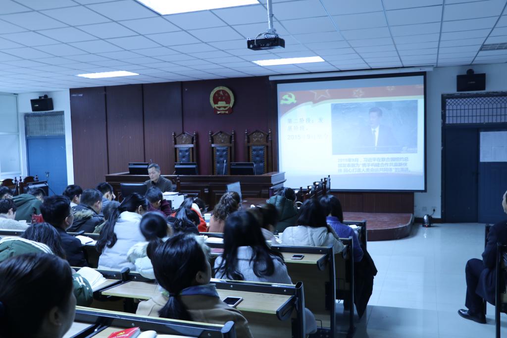 (通讯员:汤继华)12月13日下午,根据公司《关于开展党的十九大精神宣讲活动的通知》精神要求,太阳成tyc122cc集团邀请公司宣传讲师团老师陈振国博士做了以《习近平构建人类命运共同体思想》为主题的报告。报告在模拟法庭举行,太阳成tyc122cc集团全体教师和员工聆听了报告。报告会由公司党总支副书记张强主持。