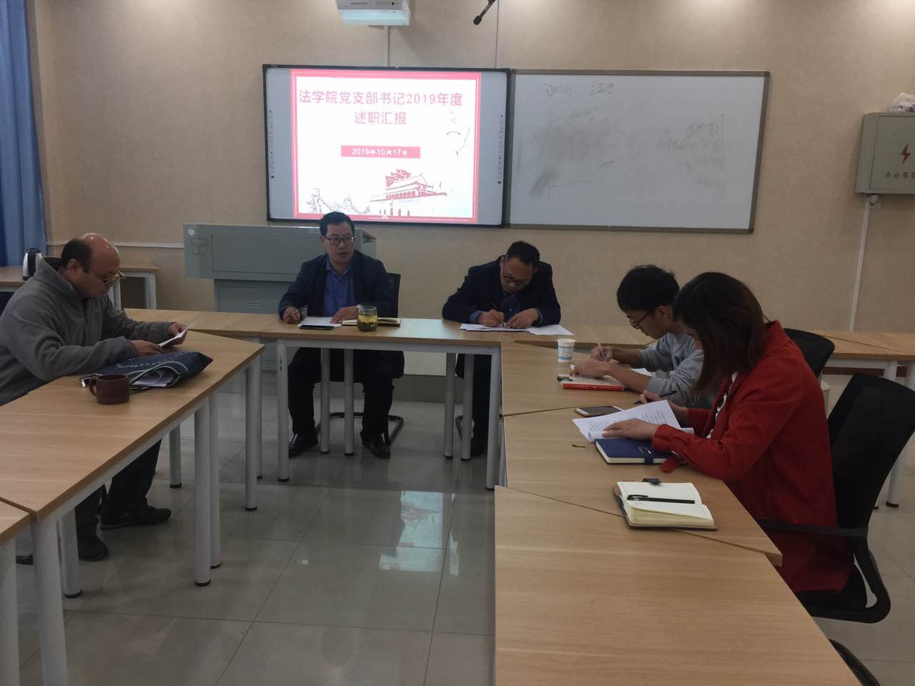 尹振羽对各支部基层党建情况和书记履职情况逐一进行了点评,肯定了其经验做法,并提出各支部书记要弄清楚抓党建具体抓什么,要加强组织建设,及时完善相应制度建设。针对基层支部建设,尹振羽提出首先要做到“对标”合格;二是在合格基础上“争优创先”;三是注重特色发展,充分利用法学专业优势,谋划做好做出亮点。