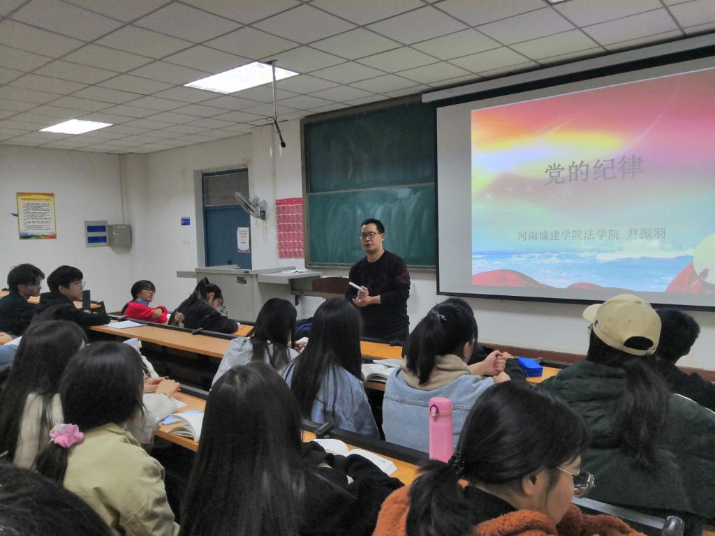 首先,尹书记提出“为什么要加入中国共产党?”这一问题,书记强调,同学们已经向党组织提交了入党申请书,就要端正入党动机,要在思想上与党组织保持高度一致,要始终以党员标准严格要求自己。接着,尹书记从纪律的含义、党章中对纪律的规定、党的纪律的基本特征与内容等多方面讲解党的纪律的重要性。党的纪律是党的各级组织和全体党员必须遵守的行为规则,是维护党的团结统一、完成党的任务的保证。党组织必须严格执行和维护党的纪律,共产党员也必须自觉接受党的纪律约束。最后尹书记强调,同学们要不断增强“四个意识”、坚定“四个自信”、做到“两个维护”,严守党的政治纪律,始终在政治立场、政治方向、政治原则、政治道路上同党中央保持高度一致。