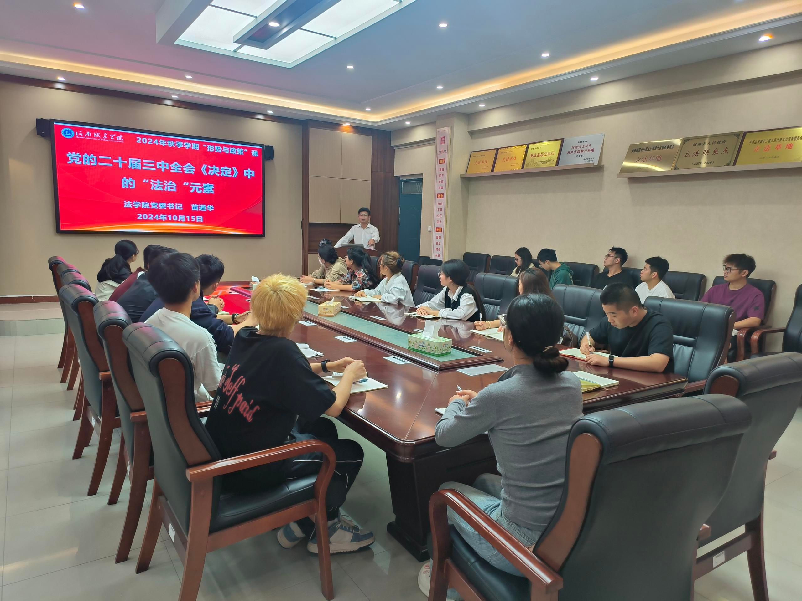 为深入贯彻落实党的二十届三中全会精神,10月15日下午,公司党委书记苗道华在美荟楼422为公司师生代表上形势与政策课。