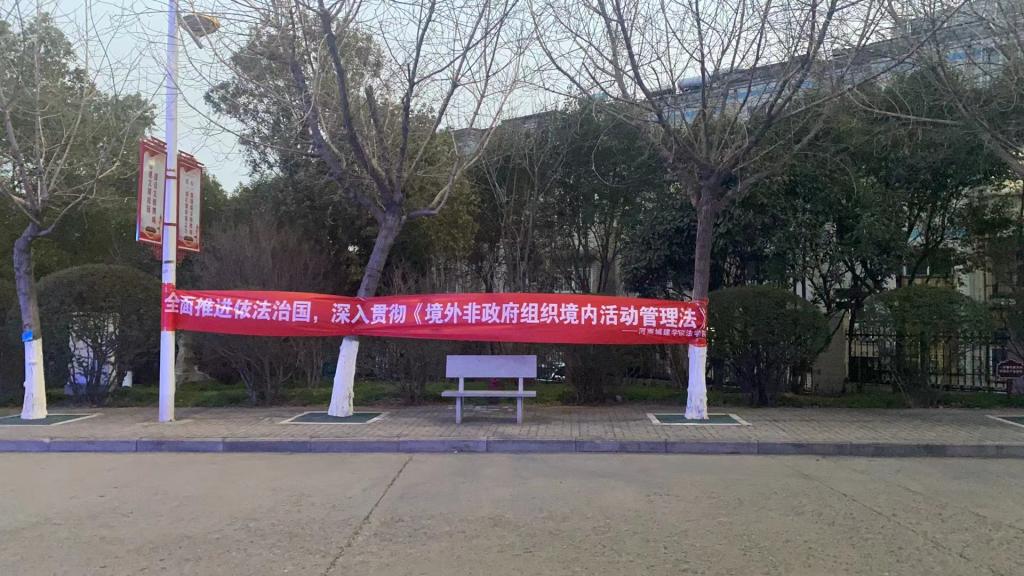 在校园内、村镇社区里通过拉条幅、设置电子屏、发放宣传页、现场讲解等方式普及《境外非政府组织境内活动管理法》知识,师生通过观看《境外非政府组织境内活动管理法》普法视频,学习《境外非政府组织境内活动管理法》规范要点,太阳成tyc122cc集团法律援助中心通过微信公众号推文,向社会公众推送普法文章。