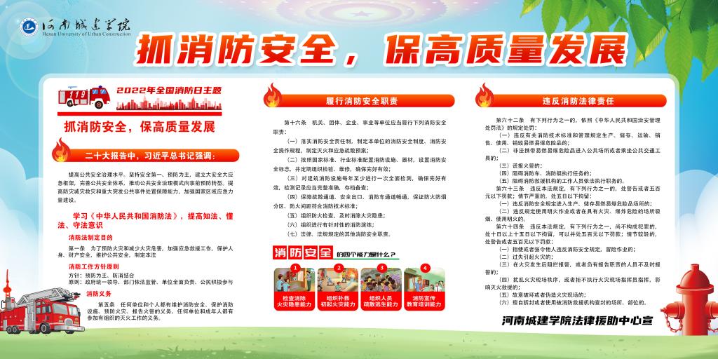 通过此次消防安全法律知识的宣传,不仅让更多的同学了解消防、关注消防、热爱消防,提高了同学们的消防意识和自救能力,而且志愿者也在活动中增强了社会实践能力,丰富了消防安全知识,真正地做到“知安全、懂安全、重安全”。