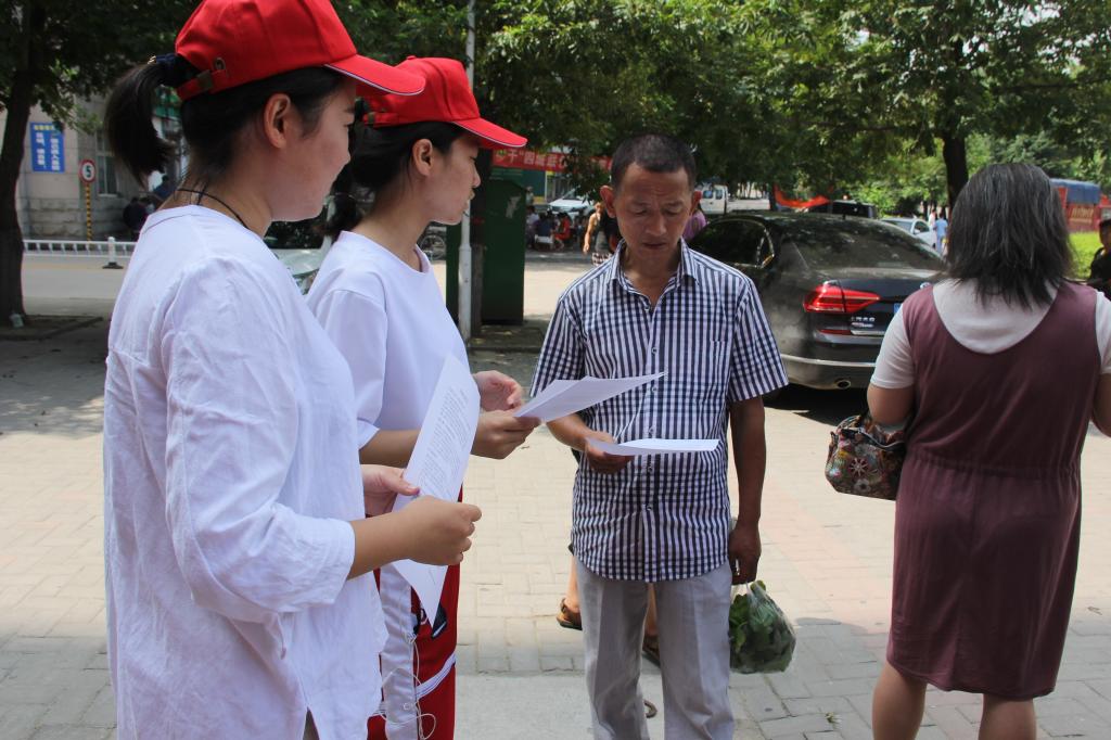 活动开始,活动主要以散发宣传页及讲述溺水危害为主。主讲人通过用具体事例向居民介绍溺水事故的危害性及严重后果;向居民介绍游泳安全知识,掌握一些简单的自救办法;树立防溺水意识、杜绝孩子无家长陪护到河中游泳,并且让居民清楚认知到小区内及其附近的易发生溺水的危险地带、水域,提出避免溺水事件发生的建议。