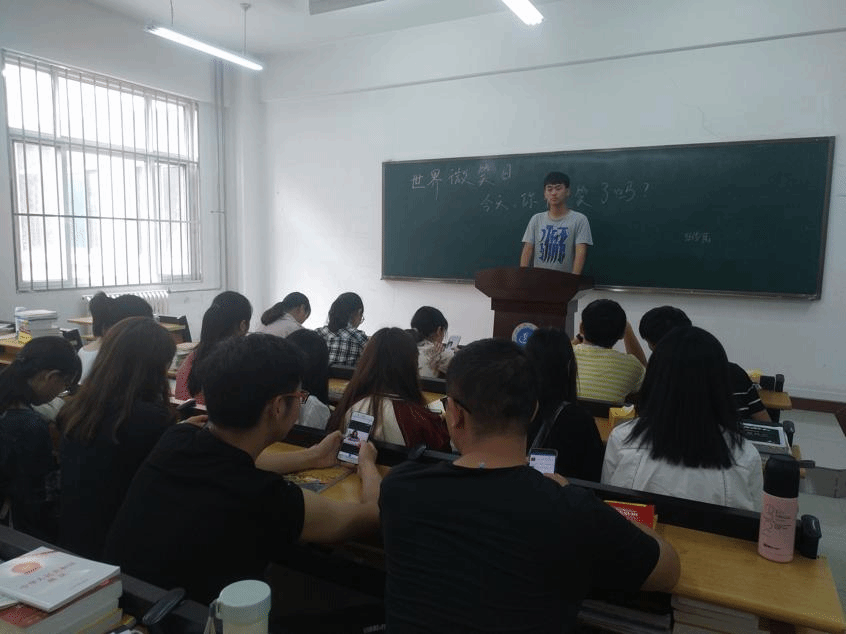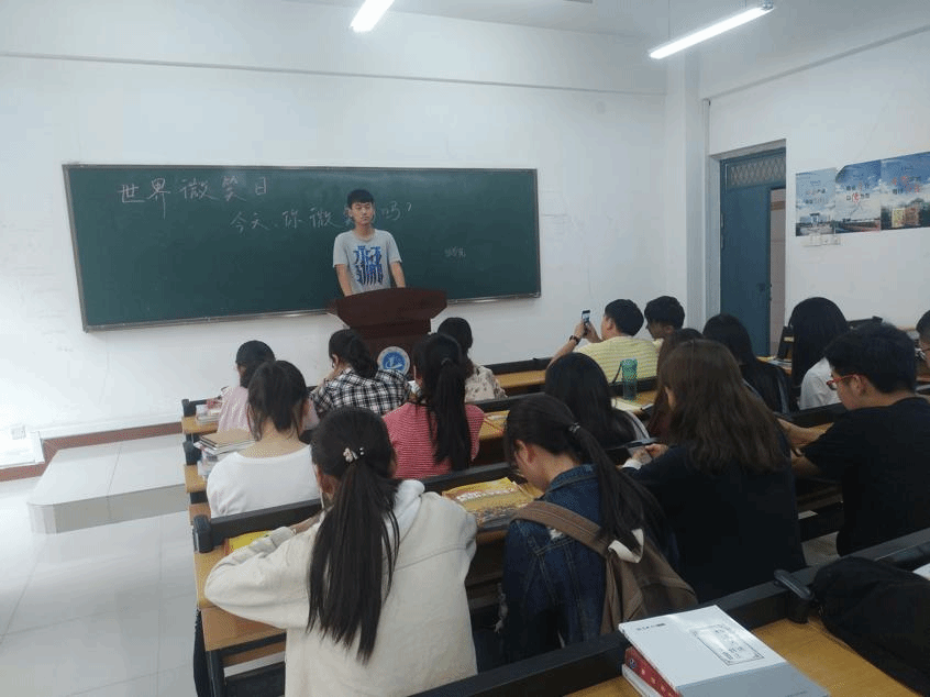 活动共分为“微笑你我他”、“才艺小展示”两个版块。活动现场,志愿者们通过发放宣传单、展示宣传展板等形式向同学们普及世界微笑日相关知识,并鼓励同学们在便签纸上绘制自己认为最有爱的简笔画,写下对微笑沟通的祝福。“才艺小展示”环节里志愿者们热情邀请同学参与,即兴表演了一个又一个小节目。情感真挚的《歌声与微笑》,寄托着对微笑传遍社会的向往与支持;员工代表慷慨的演讲《微笑面对生活》,更是表达了大家呼吁微笑,呼吁和谐社会的健康发展的心情。