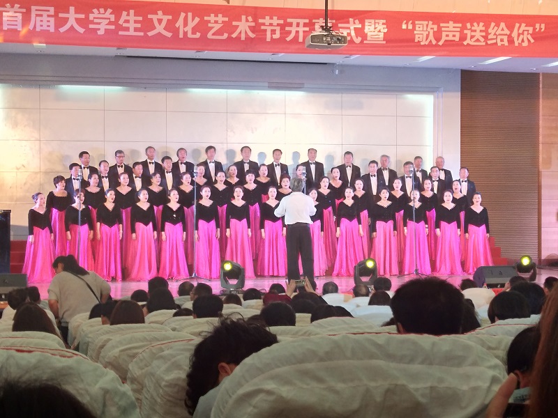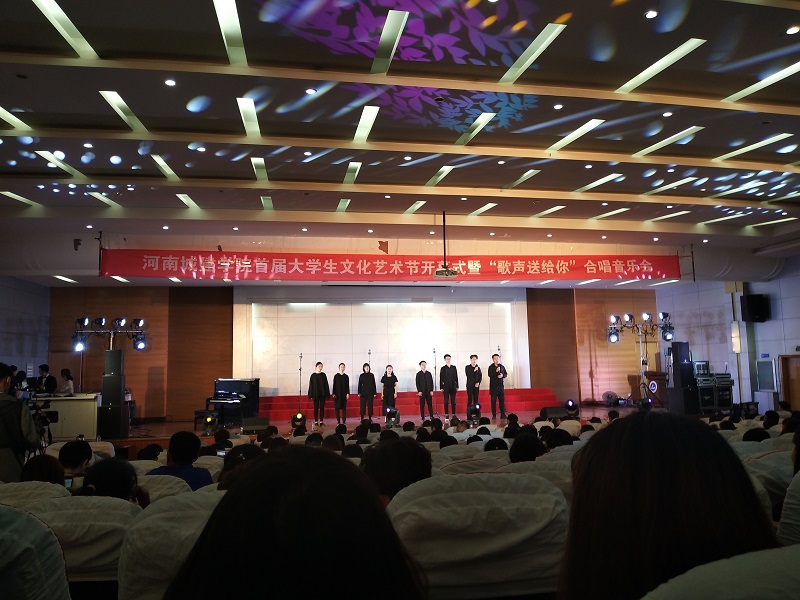 在活动的指导思想和主题宣读结束后,蓝海合唱团带来的《可可西里》、 《伏尔加船夫曲》、《亲家母对唱》等清心悦耳的歌曲使场下就爆发出热烈的掌声。校铺石合唱团歌曲《给所有知道我名字的人》打破了前几曲的基调,节奏鲜明,让同学们领略到了不同风格的音乐。平顶山群众艺术馆室内女子合唱团带来的歌曲《踏雪寻梅》《心墙》《可惜不是你》有着熟悉的旋律却带给人不一样的感受,将整个会场气氛又一次推向高潮。中国平煤神马集团黑宝石演唱的《愿亲人早日养好伤》《重整山河待后生》给观众带来了更强的音乐冲击力,《歌声与微笑》压轴登场,宛若天籁般的歌声回荡在同学们的心头。