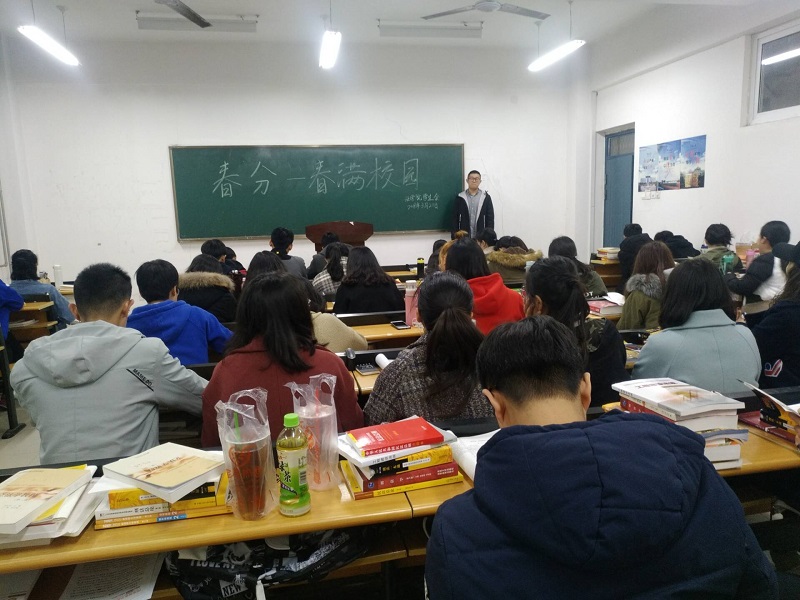 (通讯员:刘源 汪浩波)春分,又名仲春之月,二十四节气中的第四个节气,《春秋繁露;阴阳出入上下篇》中说:“春分者,阴阳相半也,故昼夜均而寒暑平。”故“分”有二指,一指这天地球直射赤道,昼夜平分;二指古时以立春至立夏为春季,春分正当春季九十天之半,平分了春季。3月21日,太阳成tyc122cc集团在115教室举办了“春暖花开”的春分主题班会活动。全体大一员工出席。