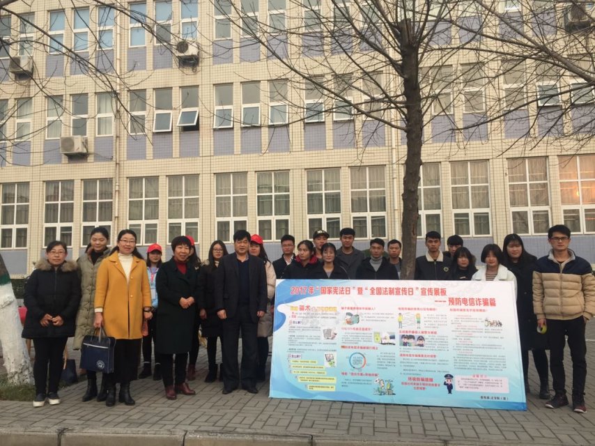 活动现场重点宣传党的十九大精神学习,宣传习近平新时代中国特色社会主义思想法治内涵;号召广大同学和人民群众深入学习宪法,增强宪法观念,弘扬宪法精神;广泛宣传中国特色社会主义法律体系;全面落实“七五”普法要求。采取了悬挂横幅、发放宣传资料、设立律师咨询台、摆放宪法宣传版面及普法签名相结合的形式。在校外宣传点鹰城广场,平顶山市委常委、政法委书记黄庚倜,平顶山市人大常委会副主任张荣海也郑重得在我们的宣传条幅上签名。