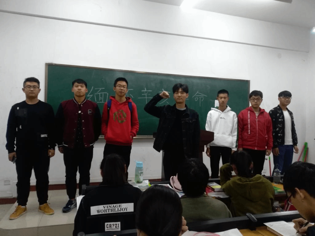活动开始,魏丽君老师为同学们讲述了辛亥革命在中国近代史的重要地位和革命前辈的斗争史,体现出先辈们在战场中奋勇拼搏,不畏艰难,勇往直前的英雄本色。前辈们可敬可泣的雄伟背影跃然眼前,仿佛身临其境,深刻的感受到了曾经的激烈场面所带来的紧张感。随后王璐瑾同学用发人深思的话语引导我们深刻去体会曾经前辈们用他们的滴滴鲜血和努力所换来的幸福的现在,是多么的不易和艰难,更显示出了辛亥革命的重大意义,让我们珍惜当下,反省过去和现在。