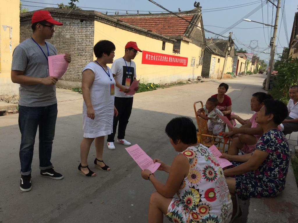 8月15日下午,送“法”下乡小分队在西果店村支部书记盛军和村主任盛功勋的带领下参观了西果店村党群服务站,学习基层党建工作流程。8月16日上午队员们前往西果店村卫生所门前进行法律咨询和问卷调查,深入了解农村法制化进程中的瓶颈与现实需求。当天下午,队员们又前往蓝湾新城社区,向社区留守老人和儿童,普及法律知识、安全知识并义务打扫卫生。
