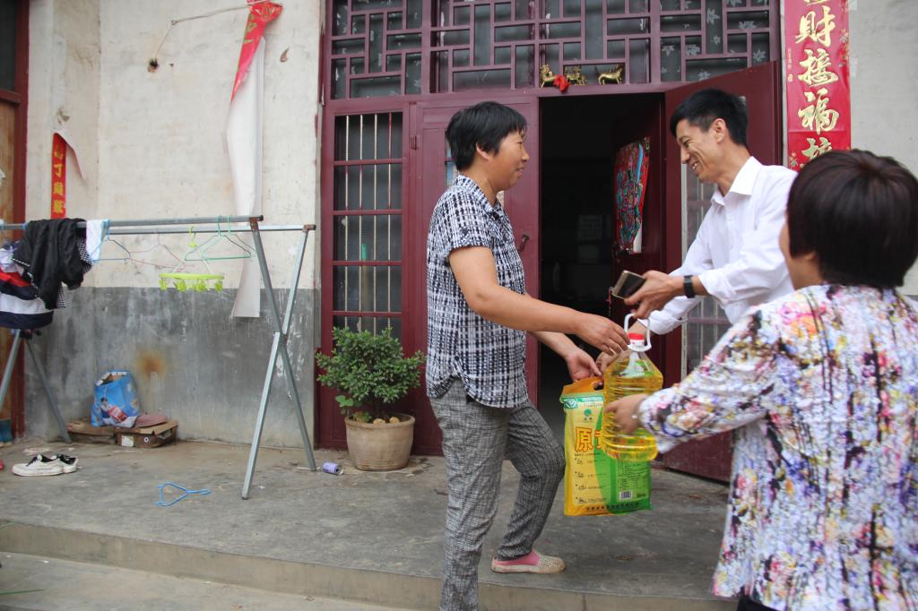 给帮扶对象送大米和食用油等慰问品