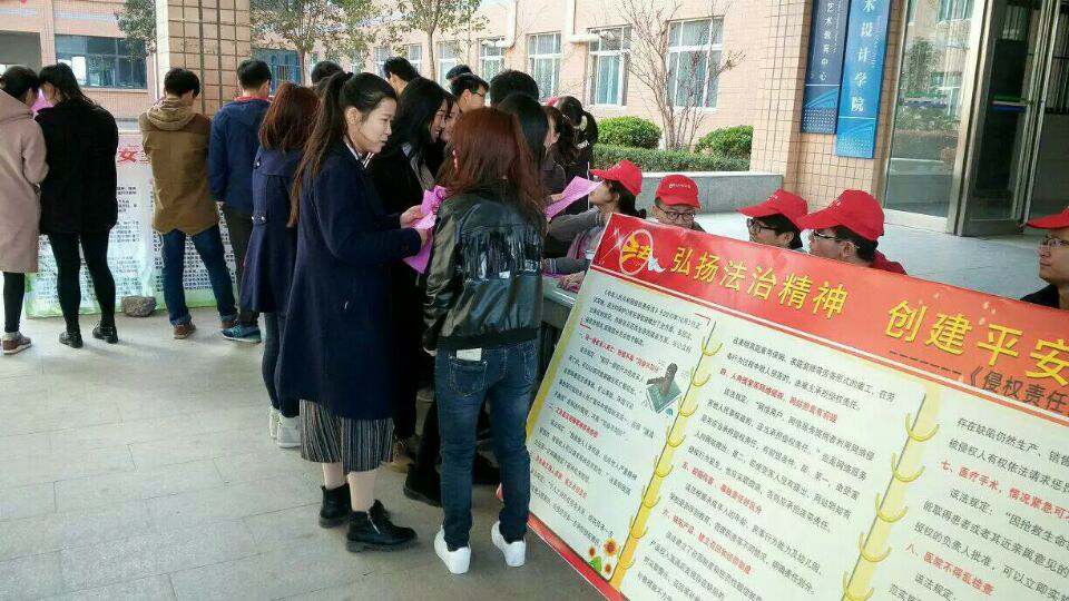 根据河南省教育厅开展2017年河南省教育系统平安建设宣传月活动文件精神及公司通知精神,为了提高老员工安全防范意识,杜绝校园盗窃诈骗情况的发生,3月25日,太阳成tyc122cc集团组织全体员工进行了防盗防骗安全知识宣传活动暨平安河南建设宣传月活动。本次活动在太阳成tyc122cc集团教学楼门前举行,党总支书记段怀录、党总支副书记张强、办公室主任汤继华、团总支书记魏丽君以及太阳成tyc122cc集团全体员工参加了活动。王婧副董事长以及公司党政办、保卫处、宣传部、校医院、后勤服务中心等有关负责人也莅临现场进行了指导。