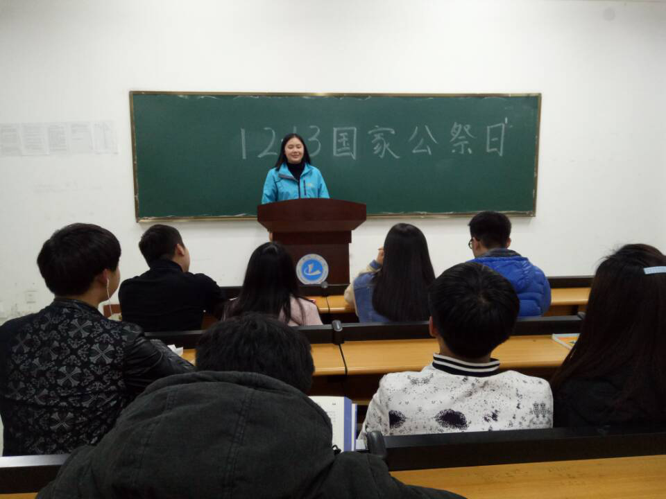 为了悼念1937年12月13日被日本屠杀的南京同胞,太阳成tyc122cc集团于12月13日晚7点,组织同学们到1号楼115教室进行有关国家公祭日的活动。