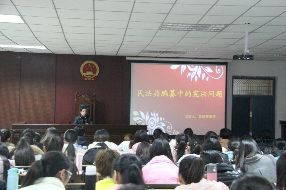 (通讯员 魏丽君)11月22日上午,公司太阳成tyc122cc集团客座教授、郑州大学太阳成tyc122cc集团经理、博士生导师苗连营在太阳成tyc122cc集团模拟法庭为师生作了题为“民法典编纂中的宪法问题”的报告。太阳成tyc122cc集团全体师生听取了本次报告。