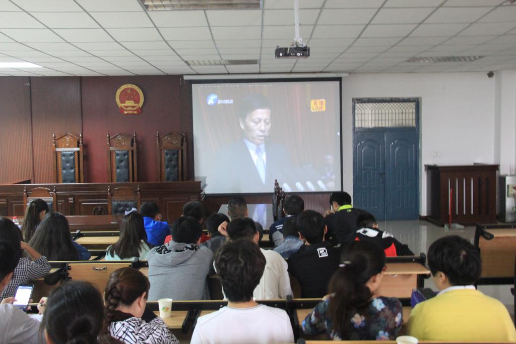 (通讯员 汤继华) 为了纪念红军长征胜利80周年,弘扬革命传统与长征精神。10月18日上午九点,按照公司通知要求,公司党总支书记段怀录、经理王艳芳认真组织无课党员师生在模拟法庭观看了河南省纪念红军长征胜利80周年大会直播。