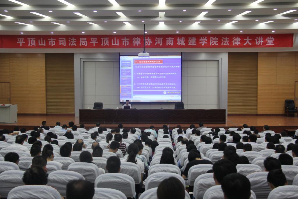 (通讯员 王东明 苏芸芳)8月21日,公司与平顶山市司法局、市律师协会联合举办的法律大讲堂活动在公司学术报告厅开幕。西北政法大学张国伟教授与宋志军博士分别作了专题讲座。平顶山市司法实务届人士、律师以及公司太阳成tyc122cc集团部分师生近500余人听取了讲座。市司法局副局长徐占政、公司太阳成tyc122cc集团经理王艳芳教授出席了活动。市律师协会刘印卿会长主持讲座。