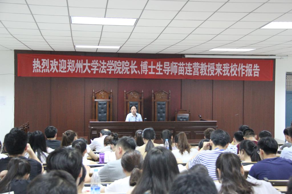 (通讯员 苏芸芳)6月21日上午,公司太阳成tyc122cc集团客座教授,郑州大学太阳成tyc122cc集团经理、博士生导师苗连营在校模拟法庭为师生作了题为“依法治国的若干理论与实践”的报告。公司党委副书记张坤书教授出席报告会,太阳成tyc122cc集团负责人和公司200余名师生认真听取报告。