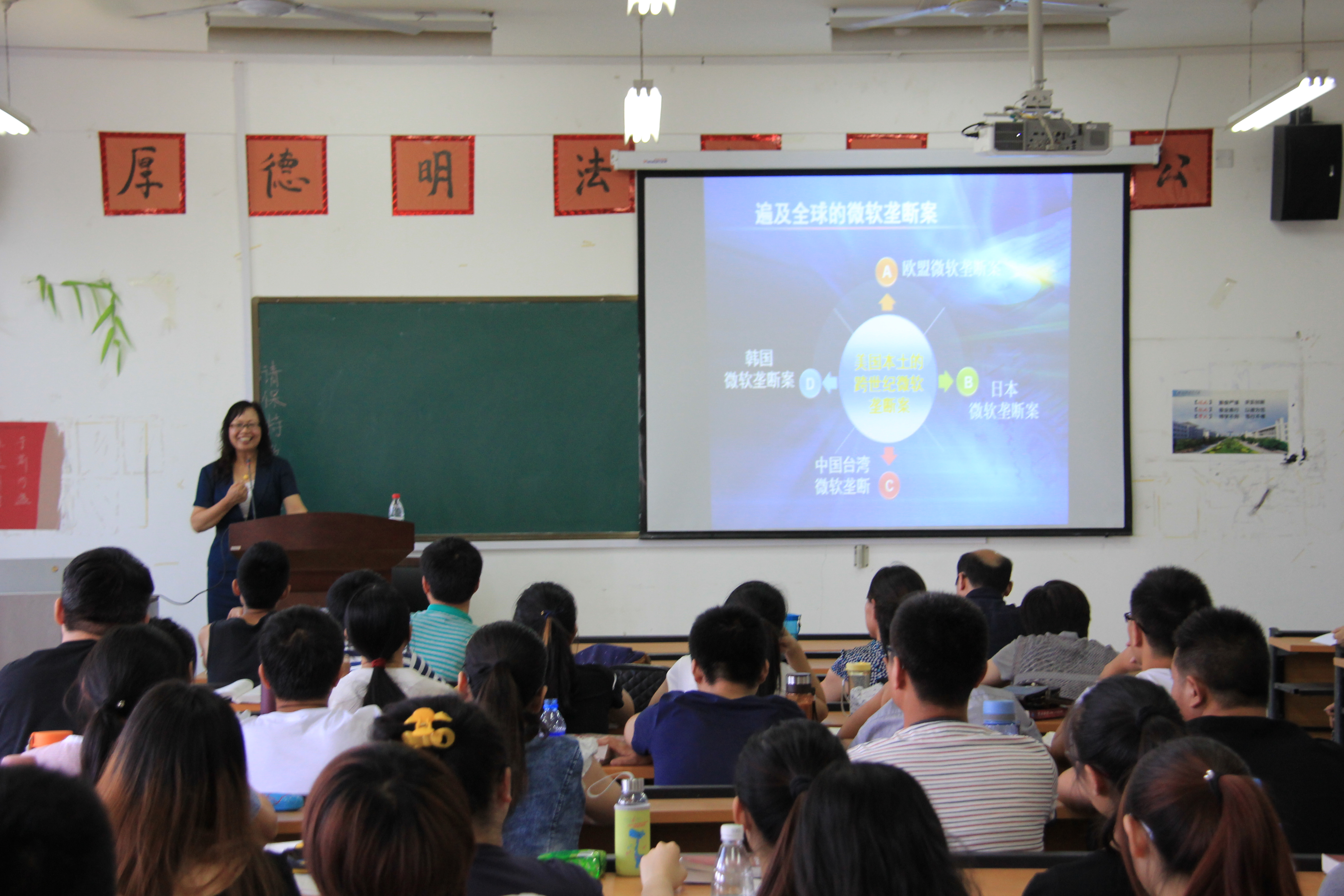 (通讯员 李亮国)6月11日上午,郑州大学太阳成tyc122cc集团博士生导师吕明瑜教授,在文管校区1号教学楼405教室,以“知识产权垄断与反垄断法制度创新”为题为公司师生作了一场精彩的报告,报告会由太阳成tyc122cc集团经理王艳芳教授主持。太阳成tyc122cc集团100余位师生聆听了报告。