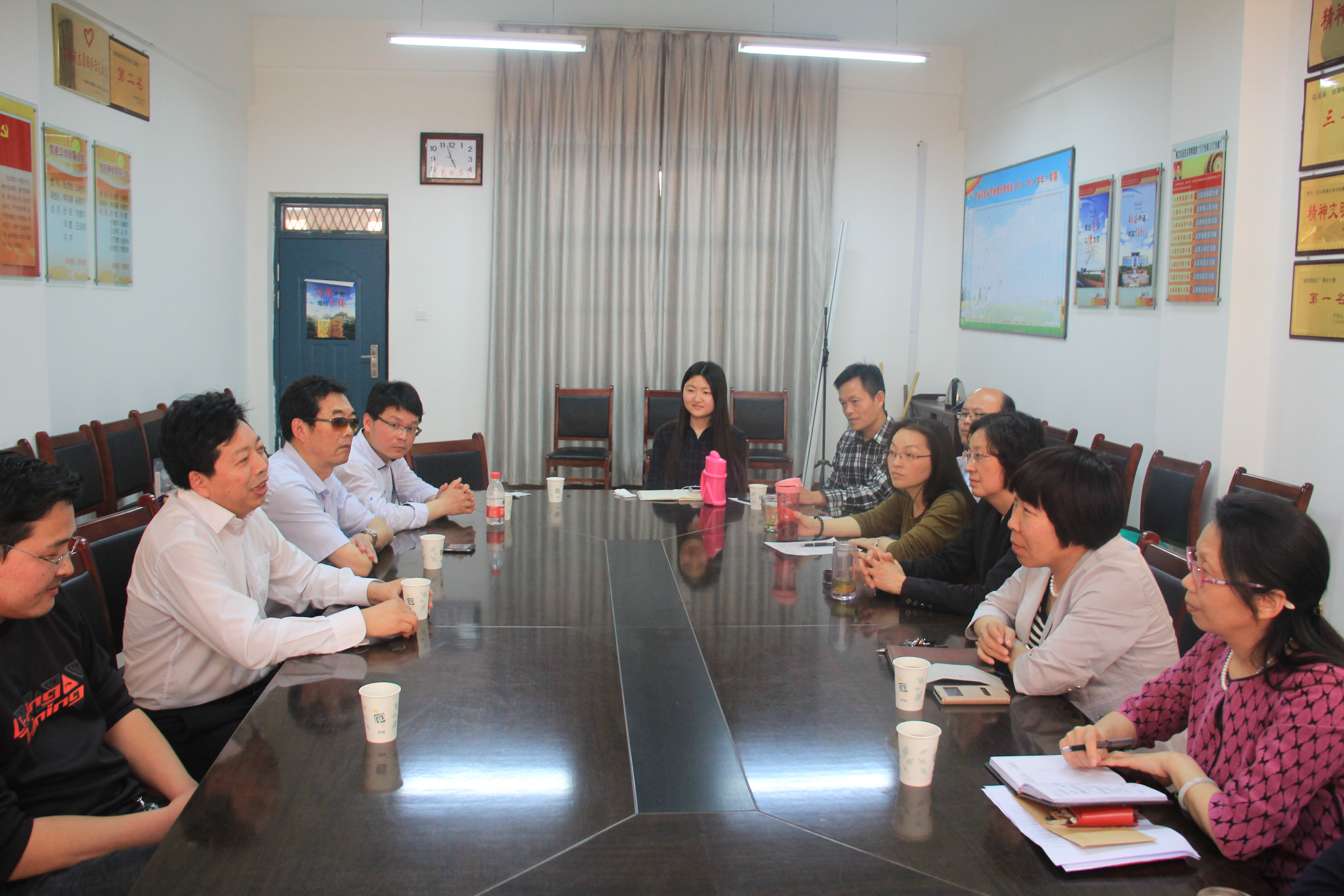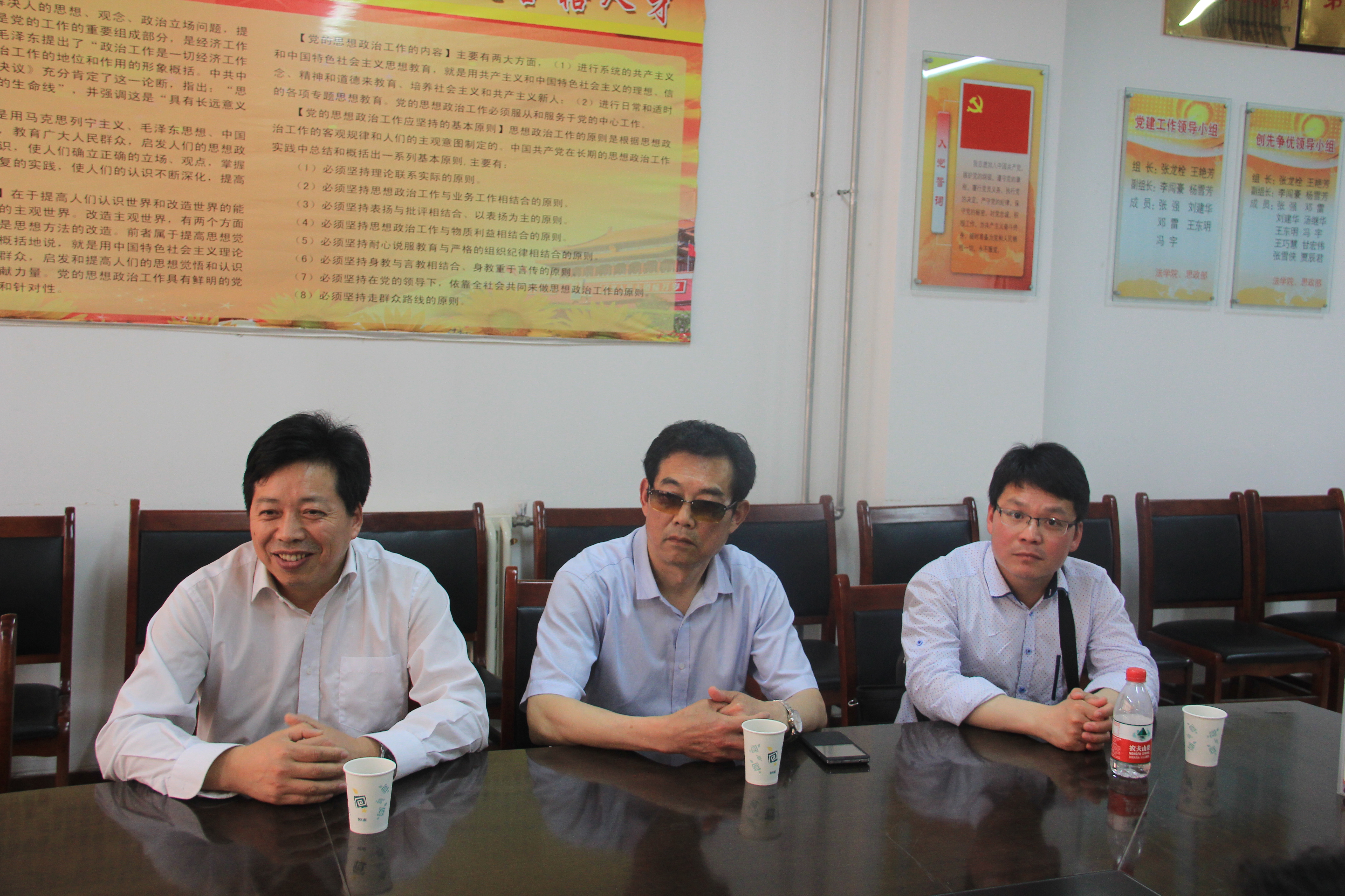 (通讯员 张强)2015年4月24日下午,周口师范公司政公司党总支书记、学报编辑部主任徐建立教授一行四人莅临公司,公司经理王艳芳、副经理杨雪芳、王芹萼以及教师代表在会议室与徐建立一行进行了座谈。座谈会由王艳芳经理主持。王艳芳首先对徐建立一行莅临公司表示热烈欢迎。双方就教学科研、司法考试、员工考研、毕业生就业、团队建设以及人才培养等方面进行了深入交流。