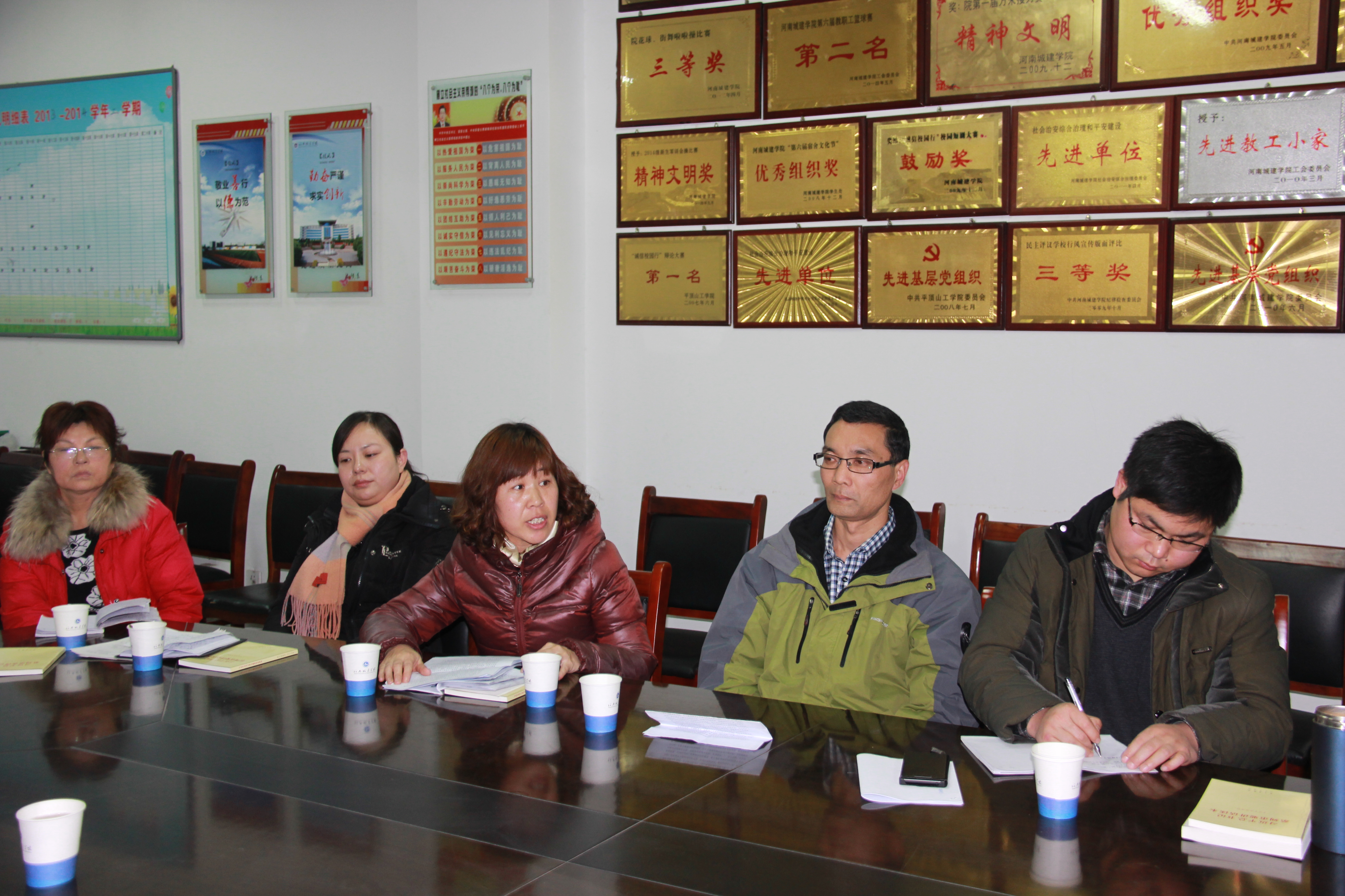 会上,教师们踊跃发言,宣传部副部长卢华东结合自己多年来的思政课教学经验,介绍了四步教学模式、双轨制教学模式、专题教学法、案例教学法等教学模式或方法,特别是对四步教学模式的“一个切入、两个转化、三个结合、四个贴近”进行了重点讲解,杨雪芳针对十八届四中全会精神的“三进”、冯宇针对《思想道德修养与法律基础》、李志娟、王巧慧针对《马克思主义基本原理》、陈蕾针对《形势与政策》分别介绍了教学改革的经验和心得体会,同时也提出了自己的疑惑。