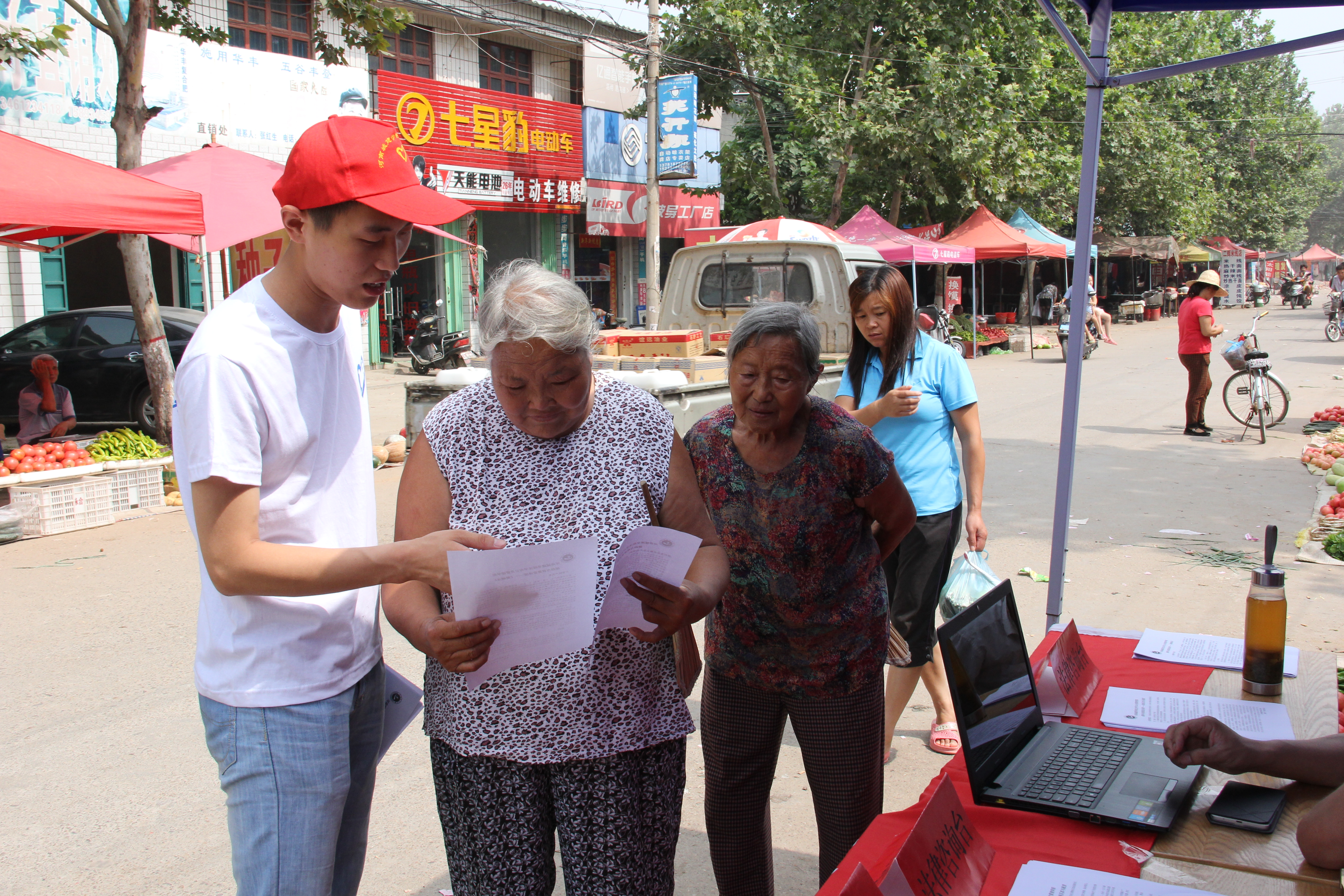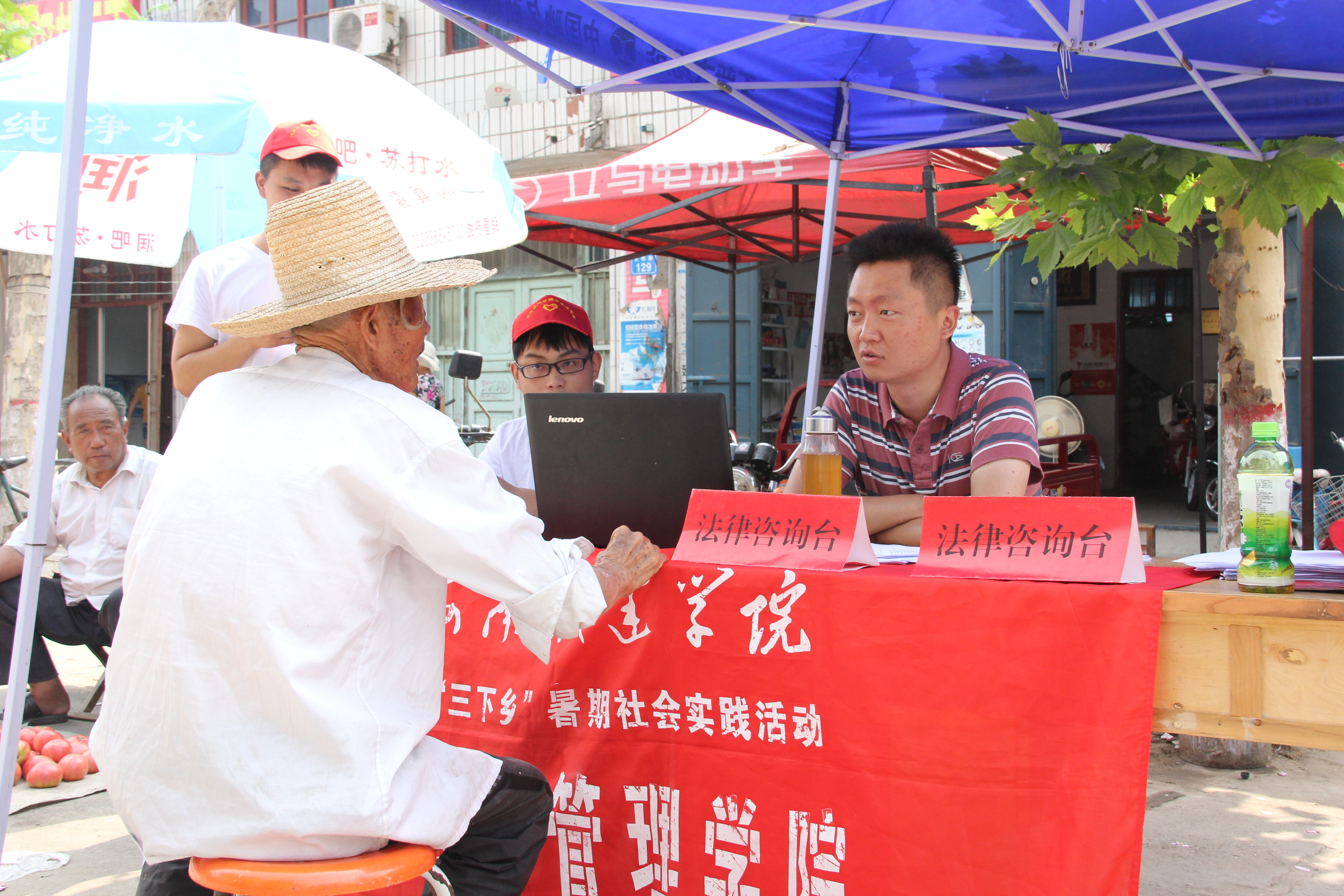 2014年7月17日星期日是太阳成tyc122cc集团暑期三下乡团队来到叶县龚店乡第三天,7月17号上午,团队来到龚店乡中心街开始了为期两天的法制宣传与政策宣讲活动。