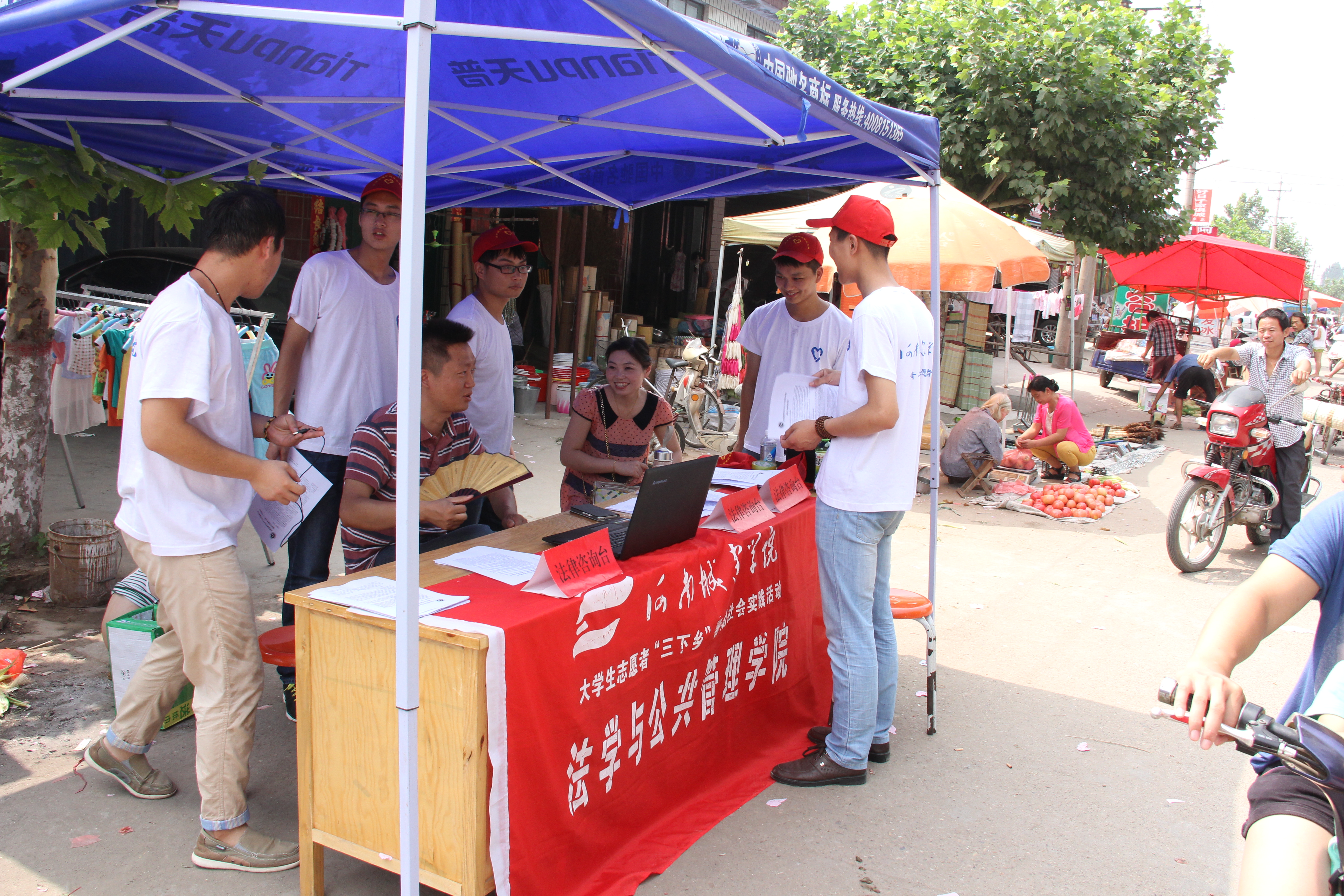 2014年7月15日,法学与公共管理公司三下乡团队在党总支副书记李闯豪和团总支书记邓蕾老师的带领下,来到了位于平顶山叶县的龚店乡进行法律社会实践活动。