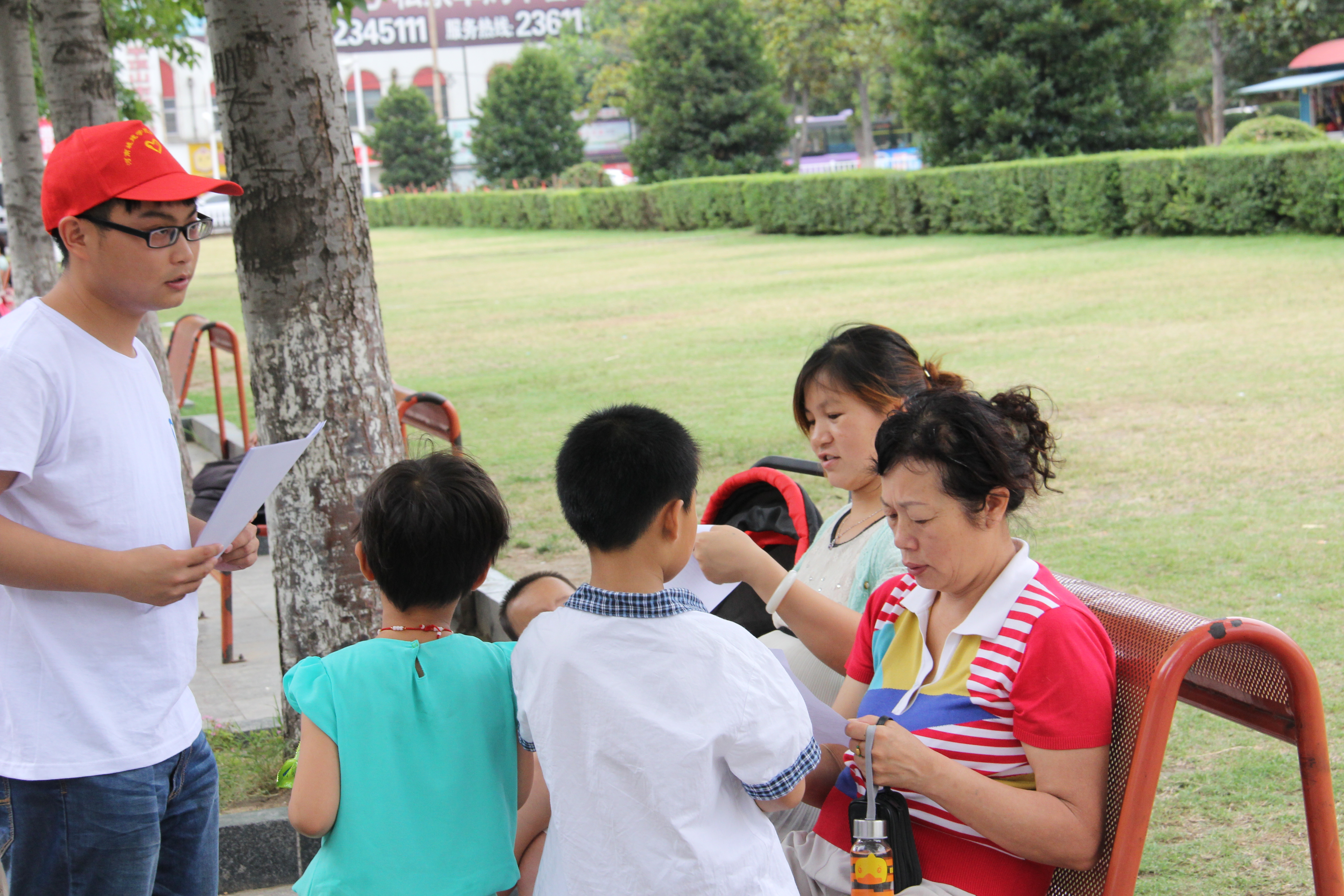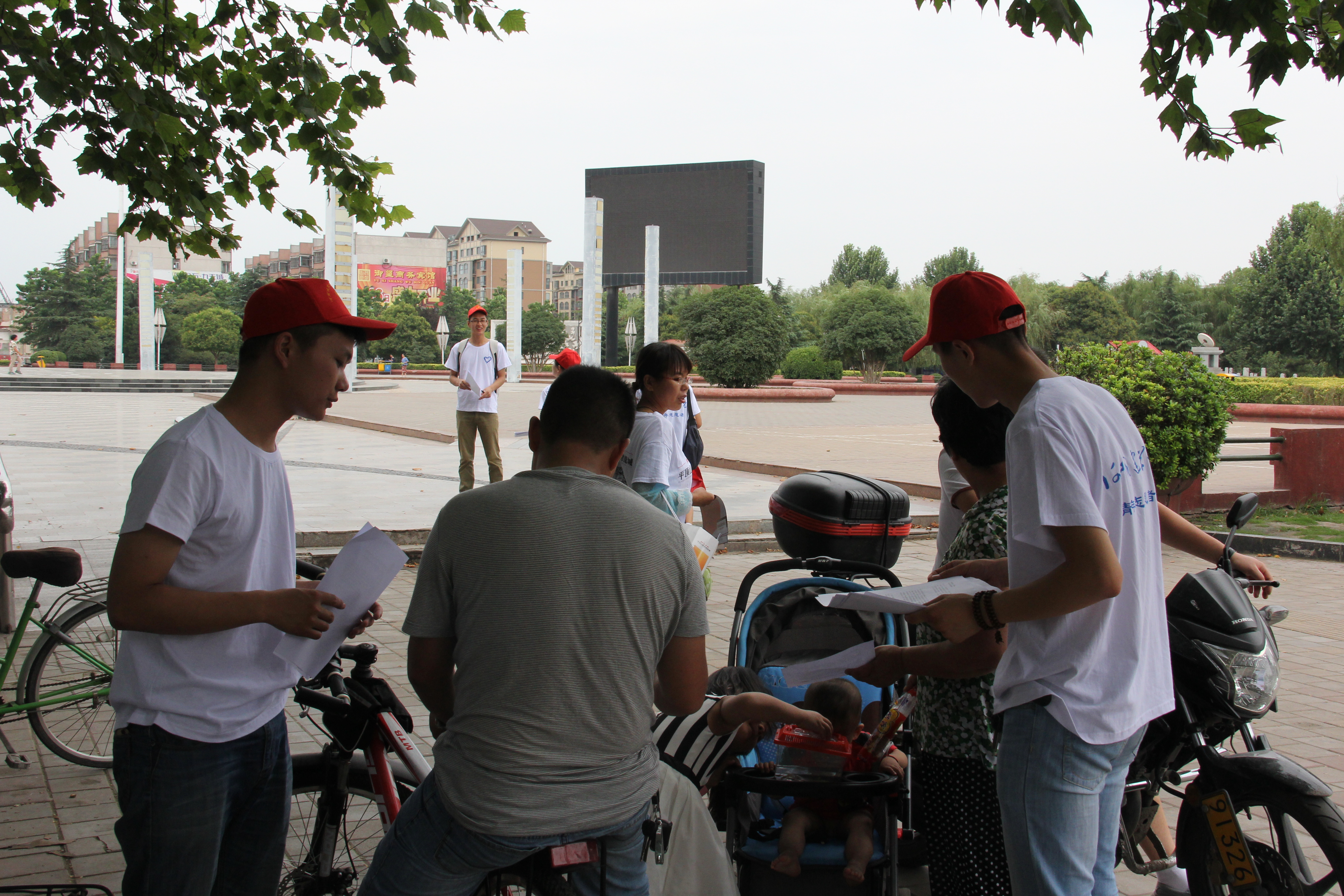 2014年7月4日上午八点,法学与公共管理公司2014年“三下乡”暑期社会实践志愿者服务队来到平顶山市鹰城广场进行义务普法活动。