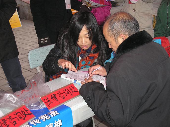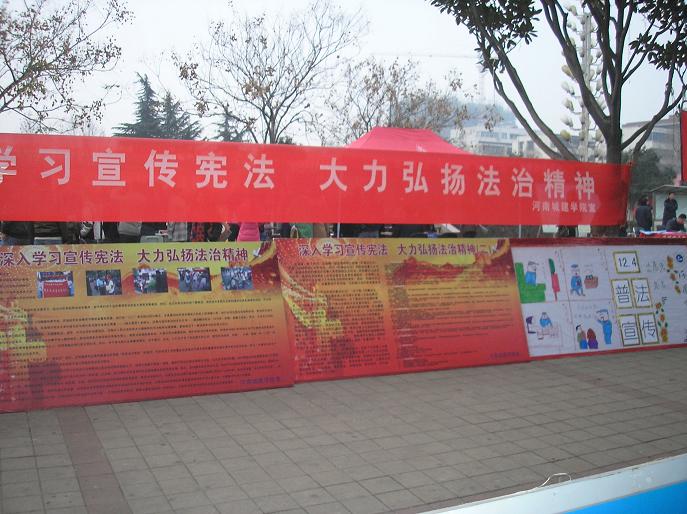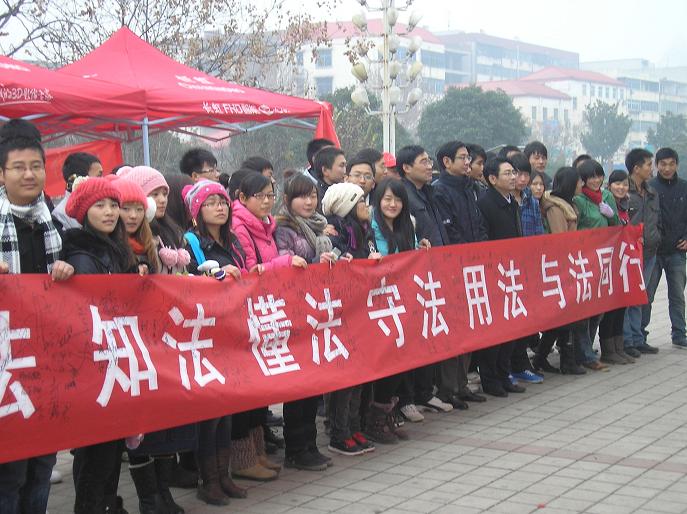 (通讯员 张强)今年的 12月4日是我国第11个全国法制宣传日。当天上午我系在市区鹰城广场、步行街及校园内同时开展了主题为“深入学习宣传宪法,大力弘扬法治精神”的法制宣传活动。我系李国华副教授和王东明博士以及百余名员工参加了此次活动。