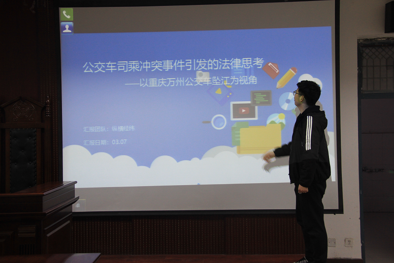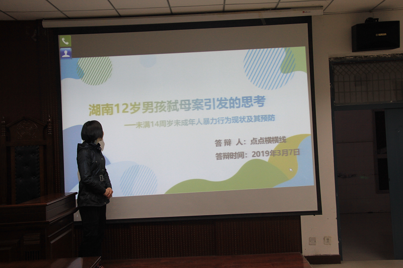 各项目小组负责人通过讲解向大家讲述自己项目的优势及特点,参赛项目大多为对当下社会热点问题所反映出的社会现象总结,通过各小组激烈的角逐。最终,参赛作品“公交车司乘冲突引发的法律思考——以重庆万州公交车坠江为视角”;“饮用水水源地法律问题研究——以平顶山市白龟山水库为例”;“湖南12岁男孩弑母案引发的思考——未满14周岁未成年人暴力行为现状及其预防”等参赛项目通过初赛,获得了大家的一致好评。