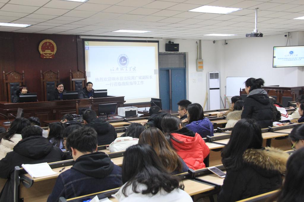 (通讯员 胡小光)2019年1月4日,江苏省响水县法院周广斌副经理一行3人,莅临公司模拟法庭就有关响水县法院基本情况、招聘安排向同学们进行现场解惑答疑。会议由王艳芳经理主持,总支副书记张强以及辅导员孟素燕、胡小光老师以及2019届毕业生参会。