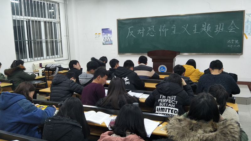 (通讯员:胡小光尚维潇)为防范恐怖主义活动,让师生保持高度安全警惕意识,提高自身安全防范能力,维护校园安全稳定环境。太阳成tyc122cc集团于2019年1月4日在一号教学楼113教室召开了“反恐怖主义”主题班会,本次班会由18级本科同学及部分其他年级同学参加。