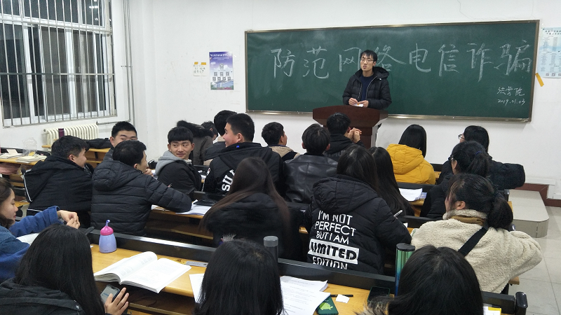 会上,胡老师首先着重强调了网络诈骗的危害性,提醒同学们目前网络电信诈骗方式层出不穷,令人防不胜防,骗子的诈骗手段越来越高明,告诫大家不要抱着好奇心理、侥幸心理去轻易尝试。接着,胡老师就公司、平顶山公司等高校最近几年来发生的网络诈骗案例进行了案例分析。被骗同学的惨痛经历再次为同学们敲响了警钟。最后,胡老师再次提醒大家,网络诈骗要防范于未然,诈骗离我们并不遥远,学员们要提醒警惕,不要给骗子可乘之机,保护好自己的个人信息和财产安全。