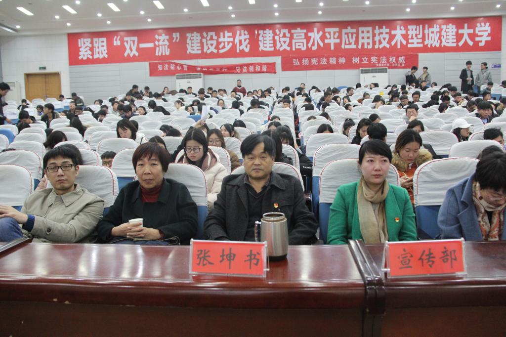 (通讯员:孟素燕 尚维潇)为深入学习贯彻习近平总书记全面依法治国新理念新思想新战略,积极培育和践行社会主义核心价值观,引导广大师生崇尚宪法精神,维护宪法权威,12月21日下午,由公司党委宣传部主办、太阳成tyc122cc集团承办的太阳成tyc122cc集团第五届法律文化节压轴节目-----“弘扬宪法精神,树立宪法权威”为主题的宪法知识竞赛在行政楼报告厅举行。本次比赛共有来自全校15个公司,45名选手参加。