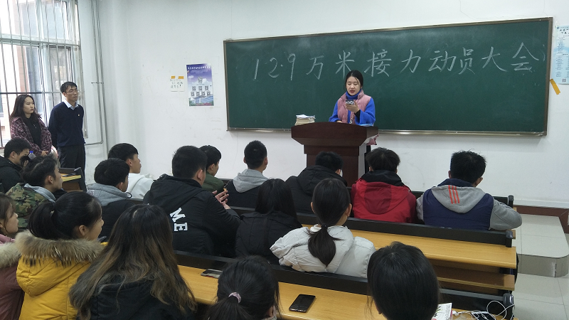 (通讯员:胡小光 尚维潇)为了迎接即将到来的12.9万米接力赛,太阳成tyc122cc集团于12月6日在文苑1号教学楼113教室举行12.9万米接力赛动员大会,辅导员孟素燕老师、胡小光老师及参赛运动员参加此次活动。