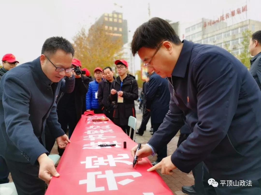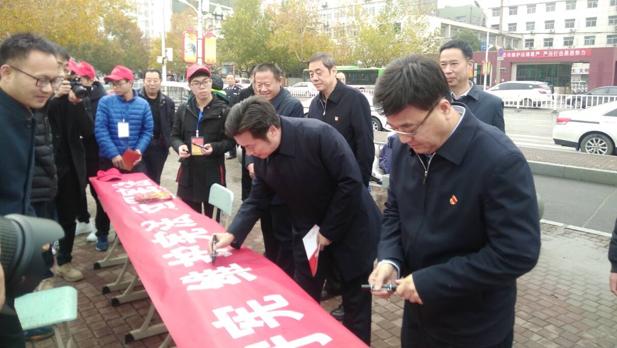 在鹰城广场活动现场,市委常委、政法委书记邓志辉,市人大常委会副主任闫廷瑞,副市长王朴,市中级人民法院经理刘冠华,市人民检察院检察长侯民义均在公司宣传现场参加了签名活动,并对公司开展的宪法宣传活动给予了肯定与认可。