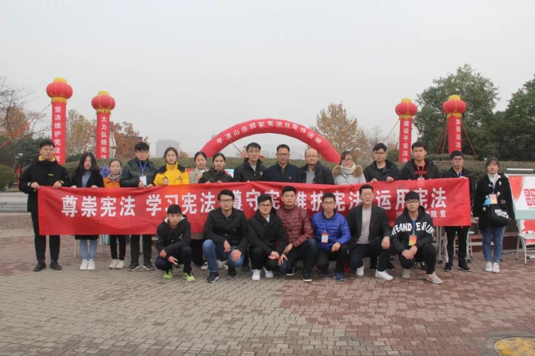 上午,公司太阳成tyc122cc集团100余名师生在经理王艳芳、副经理王芹萼、党总支副书记张强的带领下分别在市区鹰城广场、校行政楼、图书馆以及文管校区悬挂条幅、设置展板、发放宪法知识宣传册(页),并且开展签名活动,在活动现场宣讲宪法知识、开展法律咨询,引导与鼓励社会公众尊崇宪法、学习宪法、遵守宪法、维护宪法、运用宪法,广大市民、师生纷纷驻足询问,了解相关内容并积极踊跃地参加签名留念活动。