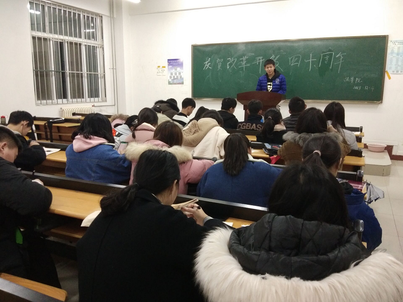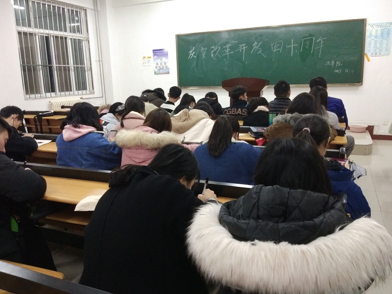 活动开始,主持人简短的介绍了“改革开放”的相关知识,并从多个方面介绍了改革开放的内容和给中国人民生活带来的好处,使同学们深入了解改革开放的意义。然后,主持人组织同学们积极发表了对改革开放的见解并分享改革开放对自己家乡与生活的改变,使同学们深切的感受到改革开放的成果。最后,主持人邀请相关人员围绕“改革开放40周年”给同学们讲述了改革开放的重要性,改革开放在我国如何运行以及对我国产生了什么影响。让同学们对改革开放有了更进一步的了解。