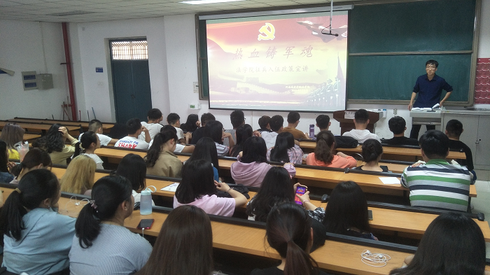 活动开始,胡老师就《宪法》关于征兵入伍的相关内容作简单解析,依照法律服兵役和参加民兵组织是中华人民共和国公民的光荣义务。接着,胡老师简单介绍老员工征兵入伍的现实意义和伟大的时代意义。同时强调入伍的相关要求及国家对老员工征兵入伍给予各种优惠政策,充分调动了同学们报名应征的积极性。最后,胡老师通过列举身边具体事例,介绍了入伍对个人发展方向与前景的重要影响,鼓励同学们积极入伍。