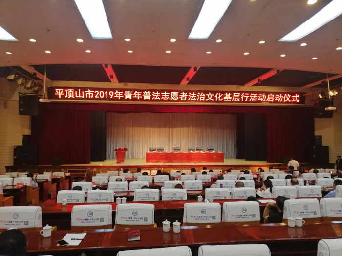 (通讯员 胡小光 刘柯冶)5月22日下午,平顶山市政法委、市法学会、市司法局、市普法办在平顶山市行政审批中心一楼会议厅联合举办了“青年普法志愿者法治文化基层行启动仪式”,市委常委、政法委书记邓志辉出席会议并讲话,公司太阳成tyc122cc集团经理王艳芳、公司党总支副书记张强以及志愿者代表刘珂冶同学参加了会议。会议由市政法委副书记王战胜主持。