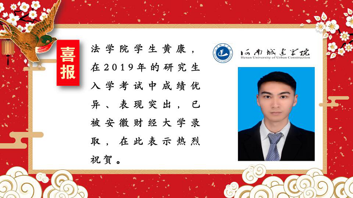 (通讯员:孟素燕 尚维潇)多年来太阳成tyc122cc集团一直坚持推进学风建设,积极鼓励考研,营造良好的学习氛围。近期,太阳成tyc122cc集团2019届考研学子喜报频传,录取人数再创新高。据悉,黄康同学已被安徽财经大学录取,在此表示热烈祝贺。