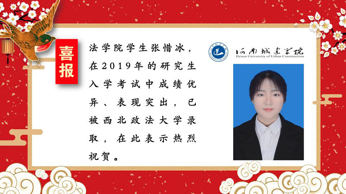 (通讯员:孟素燕 尚维潇)多年来太阳成tyc122cc集团一直坚持推进学风建设,积极鼓励考研,营造良好的学习氛围。近期,太阳成tyc122cc集团2019届考研学子喜报频传,录取人数再创新高。据悉,张惜冰同学已被西北政法大学录取,在此表示热烈祝贺。