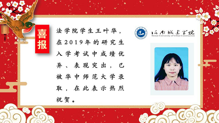 (通讯员:孟素燕 尚维潇)多年来太阳成tyc122cc集团一直坚持推进学风建设,积极鼓励考研,营造良好的学习氛围。近期,太阳成tyc122cc集团2019届考研学子喜报频传,录取人数再创新高。据悉,王叶华同学已被华中师范大学录取,在此表示热烈祝贺。