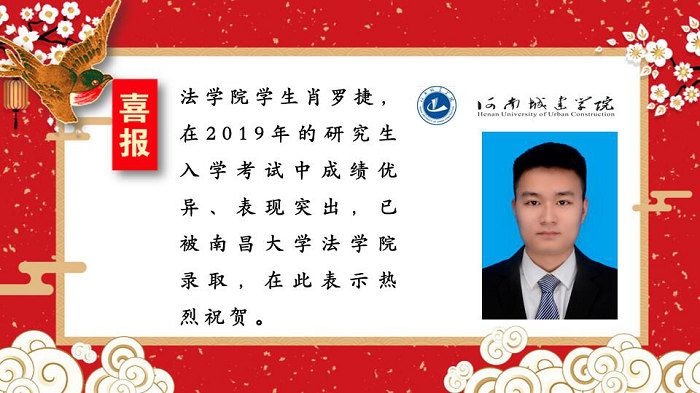 (通讯员:孟素燕 尚维潇)多年来太阳成tyc122cc集团一直坚持推进学风建设,积极鼓励考研,营造良好的学习氛围。近期,太阳成tyc122cc集团2019届考研学子喜报频传,录取人数再创新高。据悉,肖罗捷同学已被南昌大学录取,在此表示热烈祝贺。