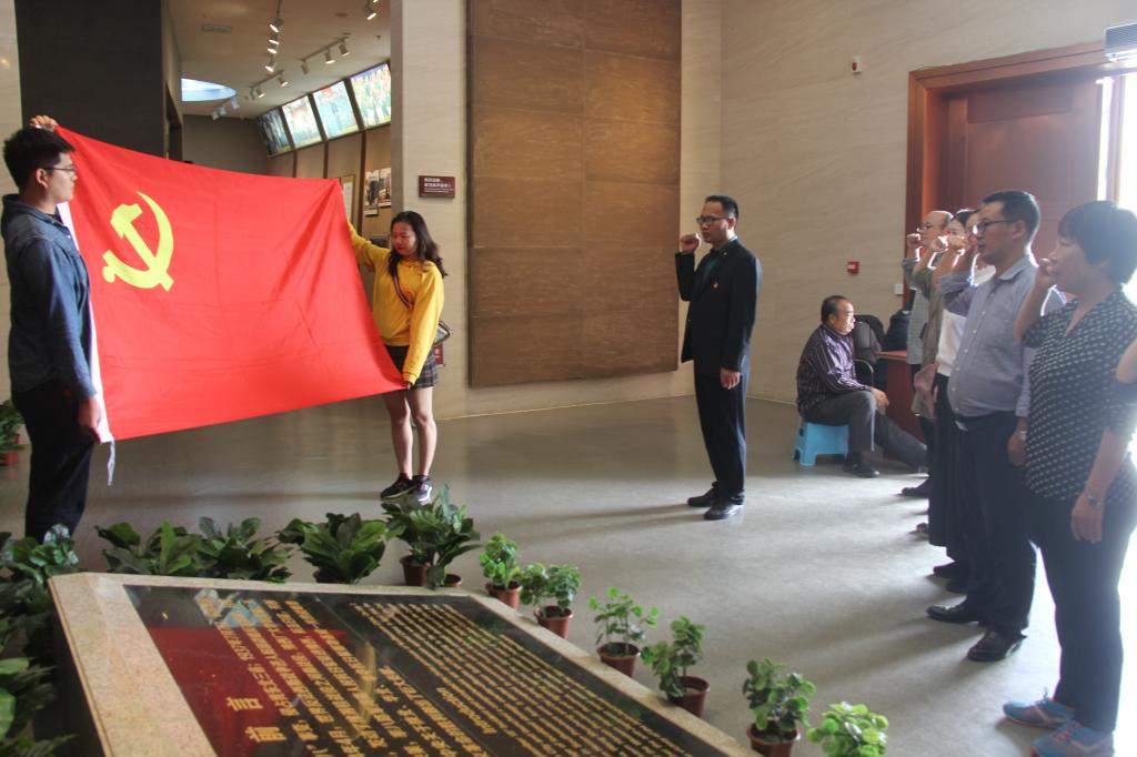 在郏县曹沟八路军豫西抗日纪念馆,公司党总支副书记张强带领大家,面向鲜红的党旗,重温了入党誓词。